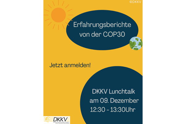Am 09. Dezember 2025 von 12:30 bis 13:30 Uhr berichten Vertreter des Deutschen Komitees Katastrophenvorsorge e.V. (DKKV) über ihre Eindrücke und Erfahrungen von der diesjährigen Weltklimakonferenz COP30 in Belém.