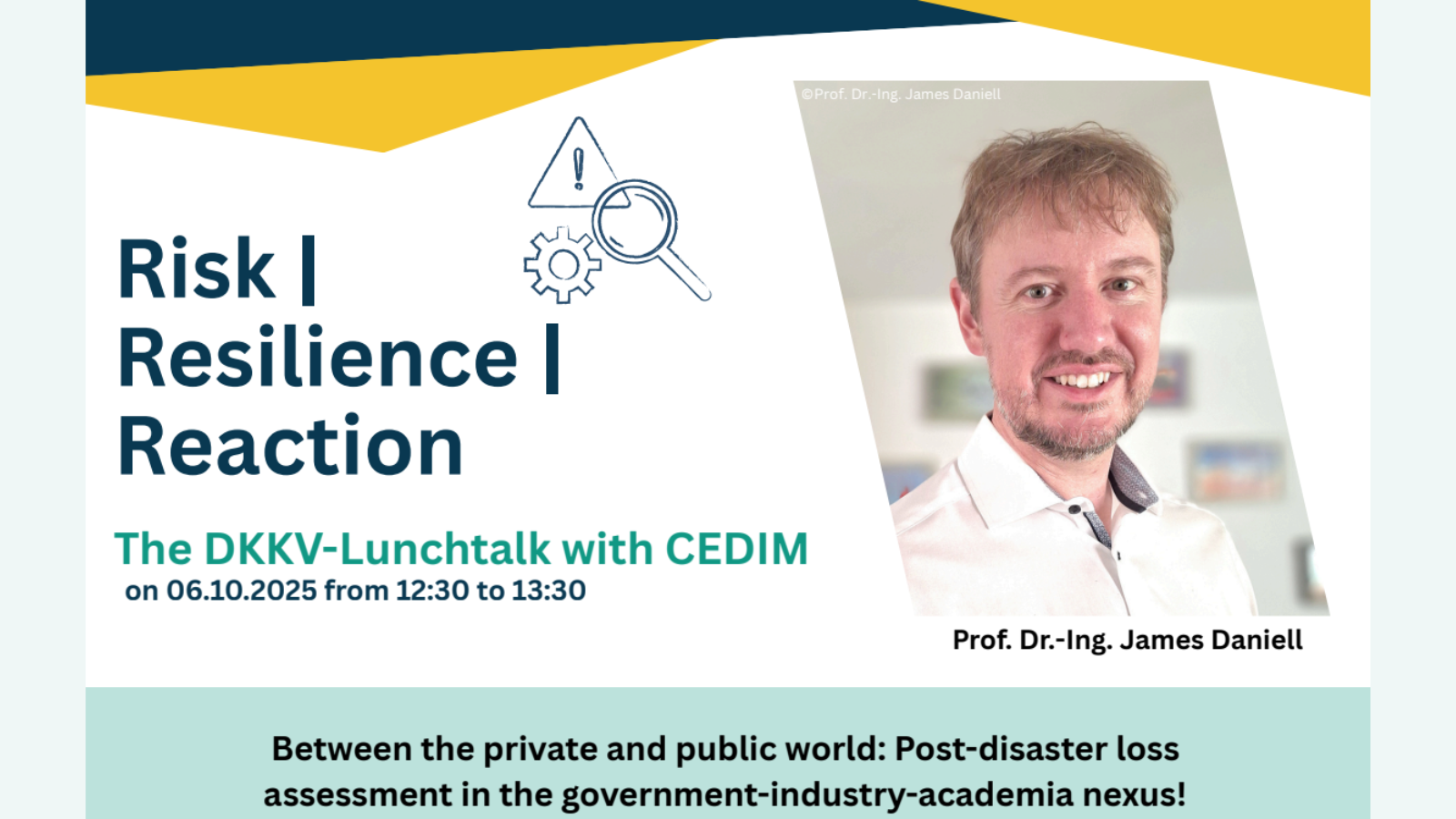 On Monday, 6 October 2025 at 12:30 p.m., the second session of the joint lunchtime talk series organised by the DKKV and its institutional member CEDIM will take place. Entitled ‘Between the private and public world: Post-disaster loss assessment in the government-industry-academia nexus!’, this session will focus on rapid and reliable damage assessment after disasters […]