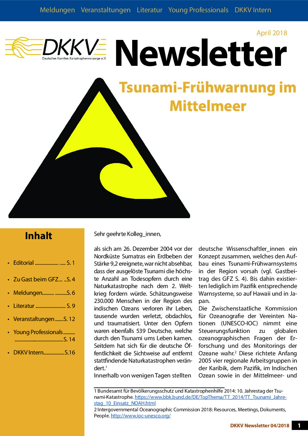 Als sich am 26. Dezember 2004 vor der Nordküste Sumatras ein Erdbeben der Stärke 9,2 ereignete, war nicht absehbar, dass der ausgelöste Tsunami die höchste Anzahl an Todesopfern durch eine Naturkatastrophe nach dem 2. Weltkrieg fordern würde. Schätzungsweise 230.000 Menschen in der Region des indischen Ozeans verloren ihr Leben, Tausende wurden verletzt, obdachlos, und traumatisiert; unter den Todesopfern waren ebenfalls 539 Deutsche. Seitdem hat sich für die deutsche Öffentlichkeit die Sichtweise auf entfernt stattfindende Naturkatastrophen verändert. Deutschland engagierte sich von Beginn an nicht nur für den Aufbau eines Frühwarnsystems im Indischen Ozean, sondern auch für die Frühwarnung in der Mittelmeer- und Nordost-Atlantik-Region, die in diesem Newsletter näher vorgestellt werden soll.