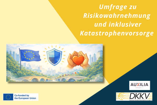 Im Rahmen des EU-geförderten Erasmus Plus Projekts RESILIENT VOICES sind zwei neue Umfragen zur Katastrophenvorsorge gestartet. Ziel ist es, ein besseres Verständnis dafür zu gewinnen, wie unterschiedliche Bevölkerungsgruppen Risiken wie Stürme, Überschwemmungen oder Hitzewellen wahrnehmen und welche Unterstützung sie vor, während und nach Krisen benötigen. Die Umfragen werden vom Deutschen Komitee für Katastrophenvorsorge e. V. (DKKV) gemeinsam mit Auxilia GroupeSOS durchgeführt.